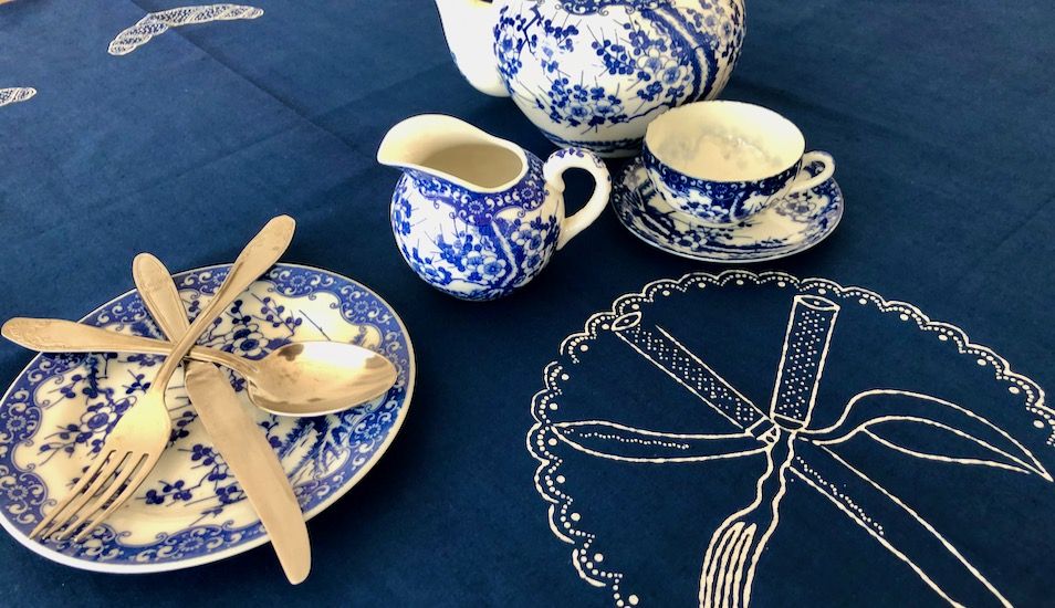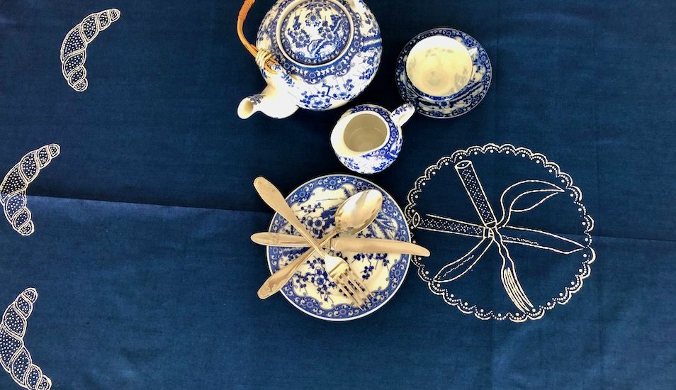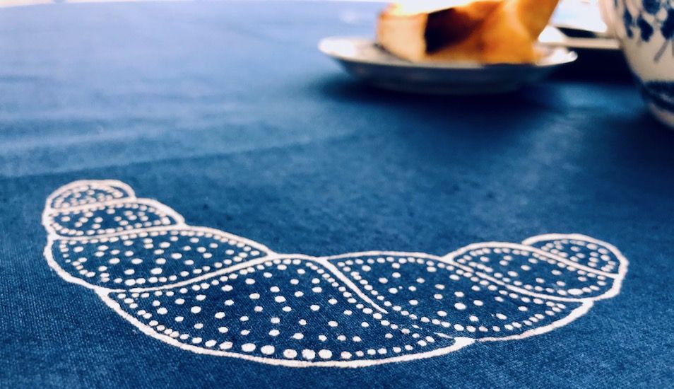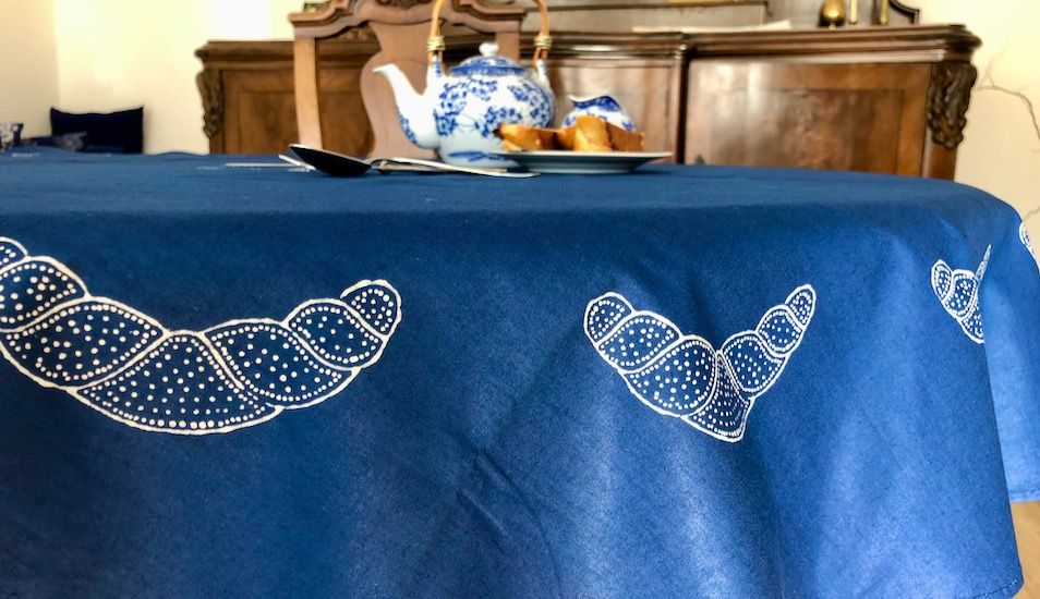 Hagyományos kékfestő anyag, évszázados technológiával, kézzel mintázvaAnyag: 100% pamutKezelés: színtartó, 60 °C-on mosható