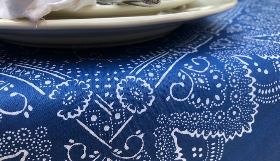 Hagyományos kékfestő anyag, évszázados technológiával, kézzel mintázvaAnyag: 100% pamutKezelés: színtartó, 60 °C-on mosható
